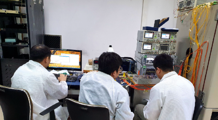 驗證與測試工作也馬不停蹄。產(chǎn)品初樣焊裝完成后,光傳輸部員工絲毫沒有歇息,立刻緊鑼密鼓地投入到了調(diào)試和改進工作中。從調(diào)試的第一天開始,相關(guān)負責人就從未離開第一線,時時刻刻都在指揮協(xié)調(diào),甚至還與驗證與測試員工一起設(shè)置溫箱、記錄數(shù)據(jù)、測試流程、改進軟件,焊線、接線、調(diào)儀器……他們齊心協(xié)力堅守崗位,周末無休,終于,在大家的共同努力下,國產(chǎn)化光轉(zhuǎn)換組件通過一次次評審,開始為用戶供貨!
