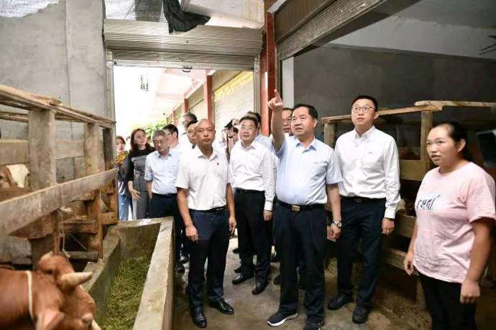 在高峰村脫貧致富帶頭人趙雪紅家里,陳肇雄走進(jìn)牛棚認(rèn)真查看養(yǎng)殖情況,親切詢問飼養(yǎng)數(shù)量、年收入情況。趙雪紅家曾經(jīng)因?yàn)橐淮瓮话l(fā)的特大山洪,失去了親人,也幾乎喪失了對生活的信心。在中國電科家庭式母牛散養(yǎng)項(xiàng)目啟動后,她主動報(bào)名參與,并按照散養(yǎng)要求,全身心的做好科學(xué)飼養(yǎng)。2019年,趙雪紅賣了5頭半大牛犢,換來了近5萬元的收入,家里還有8頭牛在欄,價(jià)值近20萬元。陳肇雄對趙雪紅自立自強(qiáng)的精神表示贊賞,對其家庭的扶貧變化感到高興,叮囑她要發(fā)揮好致富帶頭人作用,帶動更多鄉(xiāng)親脫貧致富。