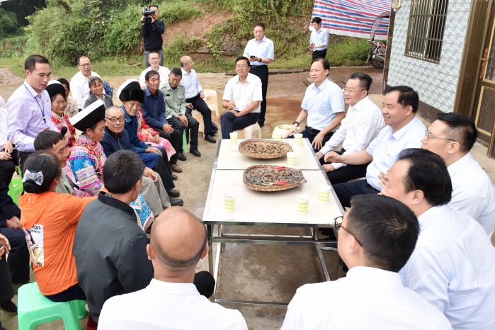 當(dāng)天,陳肇雄一行深入到敘永縣白臘苗族鄉(xiāng)高峰村黨群服務(wù)中心、白臘苗族鄉(xiāng)亮窗口村電科牛場,了解黨建引領(lǐng)促進(jìn)脫貧攻堅(jiān)、產(chǎn)業(yè)發(fā)展形成鞏固脫貧成果“造血”機(jī)制情況;走進(jìn)貧困戶家中,仔細(xì)察看了解他們的生活狀況和脫貧情況。