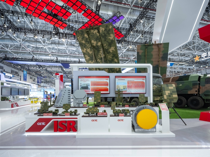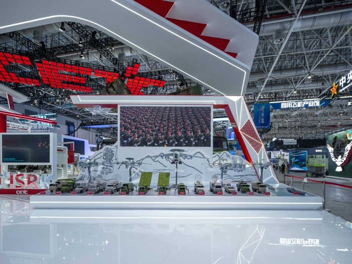 本屆展會(huì),中國(guó)電科以“擁抱體系制勝時(shí)代”為主題,打造了C4ISRK、電子基礎(chǔ)、數(shù)字經(jīng)濟(jì)、新域新質(zhì)等四大展區(qū)。攜旗下37家二級(jí)單位,43家研究院所,室內(nèi)外展示面積達(dá)1萬(wàn)平米,共展出36部大型實(shí)裝,480項(xiàng)產(chǎn)品參展,其中73項(xiàng)產(chǎn)品首次亮相。體系化展示了整體解決方案和譜系化、智能化裝備,彰顯了軍工電子在武器裝備機(jī)械化、信息化、智能化融合發(fā)展中的作用。